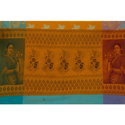 Yellow Blended Kora Cotton Saree with Zari Butta on the body and Zari Border. Includes unstitched blouse.